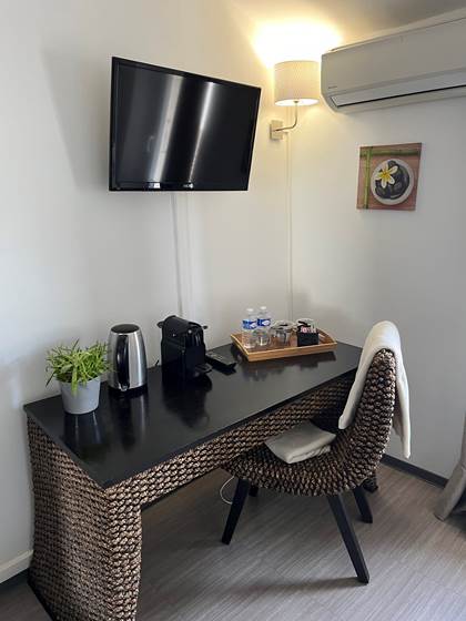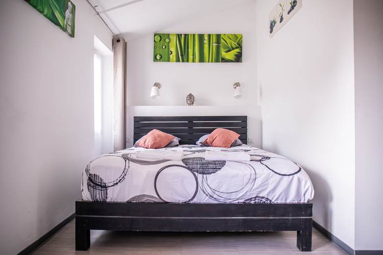 The "San Peyre" room (19 m2) is furnished with a double bed, television, secure wifi access and reversible air conditioning. We offer a courtesy tray upon your arrival.
